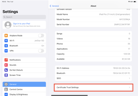 - For more information you can also refer to this guide from Apple for manually trusting the certificate. Trust manually installed certificate profiles in iOS and iPadOS – Apple Support (AU)