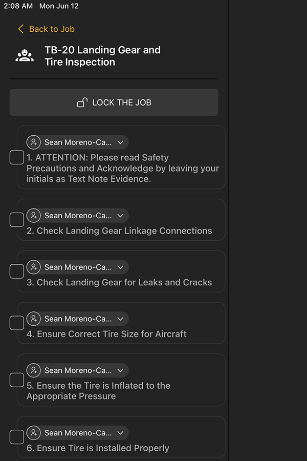 - Select Start or Resume, add Evidence or Faults, and complete steps and the Job as normal