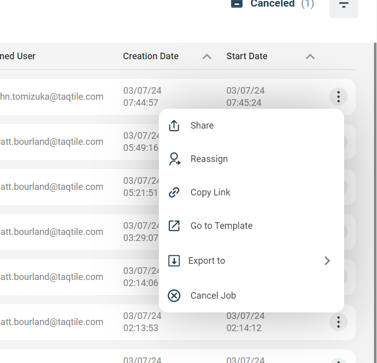 - If the Job Template is for the same Asset as the current Parent Job, the user will be navigated directly into the Sub-Job when selecting Go to Job