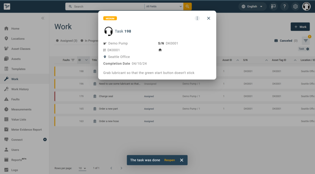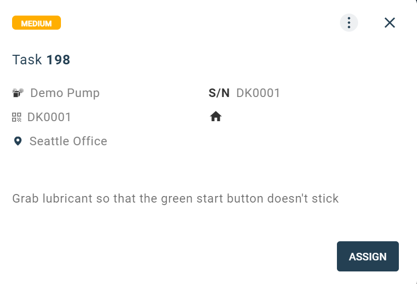 - Once the assignment is accepted, the window will automatically update and drop the newly assigned Operator into the associated Work item’s screen