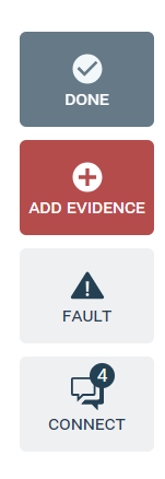 If a Job Step is set to require Evidence Notes, the ‘Add Evidence’ button will be red and the ‘Done’ button will be disabled until the required Evidence as added. Selecting the ‘Add Evidence’ button will open the available Note Type options with a red ‘required’ label denoting which Note Type is required. If the yellow label displays ‘any evidence’, this indicates that any Note Type will suffice. The Operator will not be able to complete the Job Step until the required Evidence Note is added for that Step.